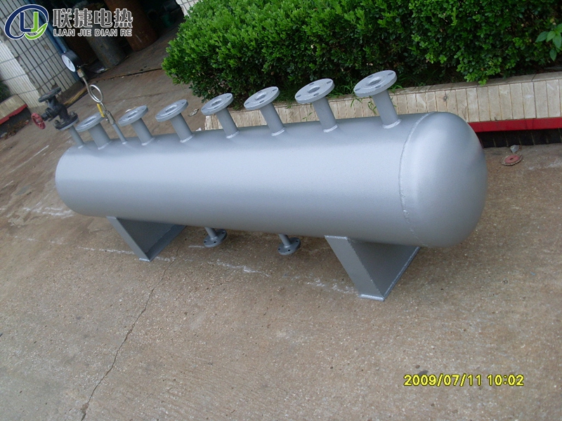 集分水器是由集水器和分水器组合而成的水流量分配和会集装置。分水器是将一路进水通过一个容器分为几路输出的设备,而集水器则是将多路进水通过一个容器一路输出的设备。其管理若干的支路管道,分别包括回水支路和供水支路,其较大多为DN350-DN1500不等,用碳钢或不锈钢板制作,属于压力容器类专业制造,其需要安装压力表温度计。它一方面将主干管的水按需要进行流量分配,保证各区域分支环路的流量满足负荷需要,同时还要将各分支回路的水流汇集,并且输入回水主干管中,实现循环运行。其回水再利用,可达到更节能的效果,可以同时满足供热与制冷的需要,其广泛应用于锅炉、中央空调、工业循环冷却水系统、热水系统。