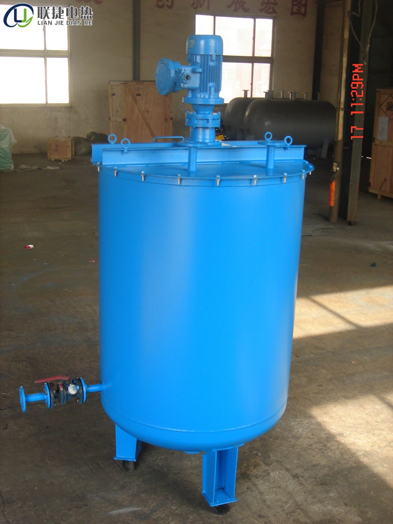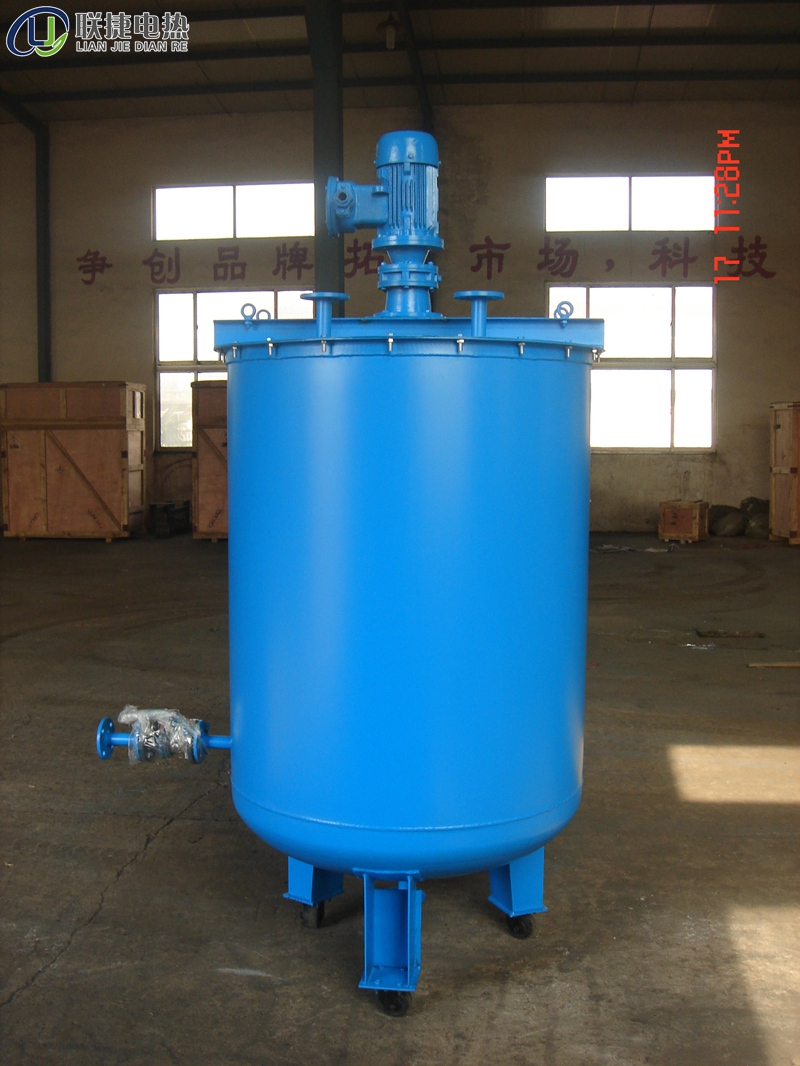 2、加热方式:采用电热棒插入夹套内,加热均匀无冷区。夹套内注入导热油或水为加热介质,产生热能对罐内物料进行加热。